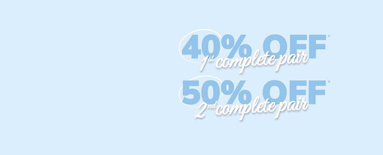 Complete your pair with 40% off* all lenses *T&Cs apply