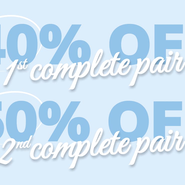 Add two complete Clearly glasses to your cart and get 50% off* the second pair at checkout!